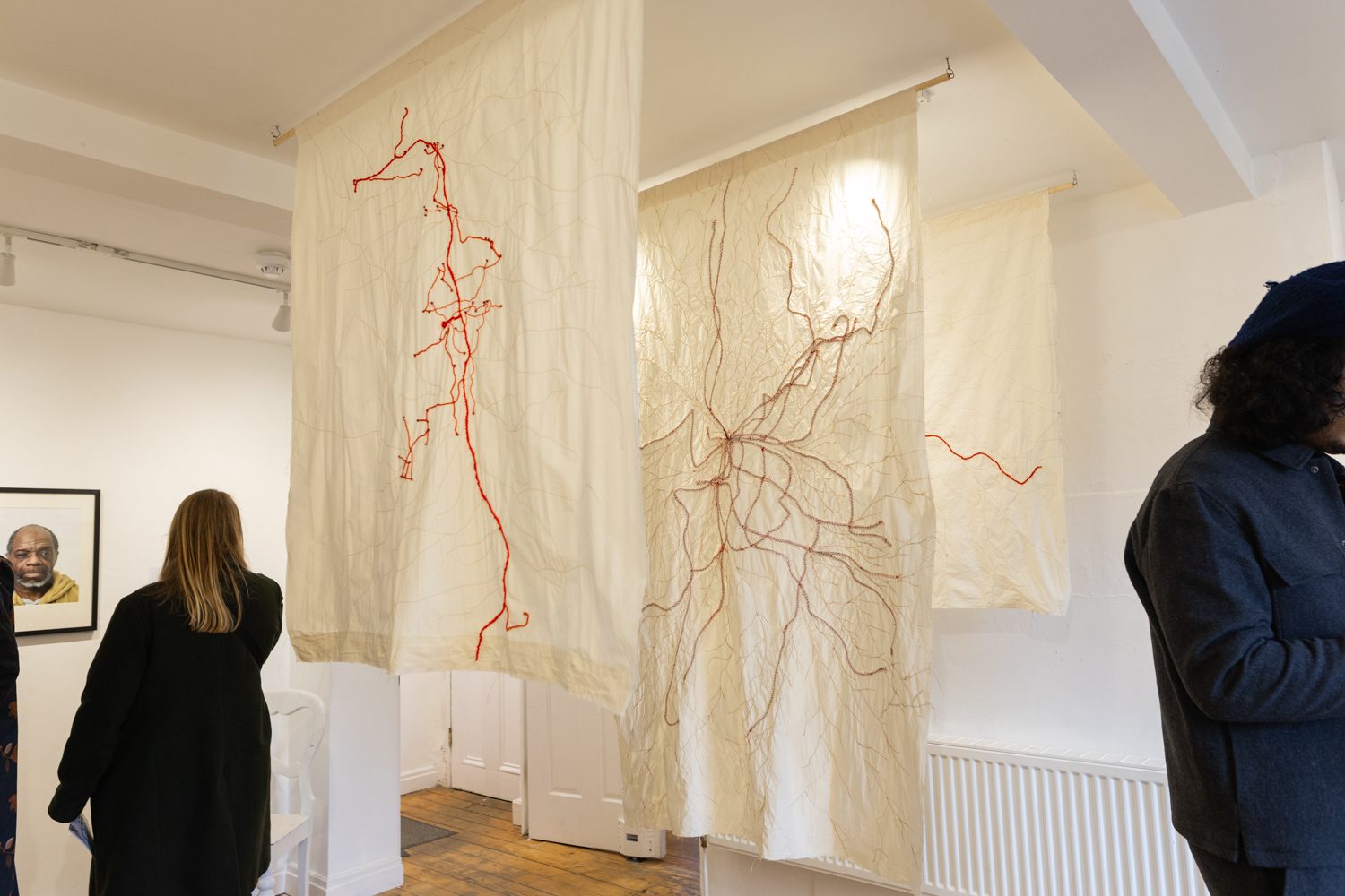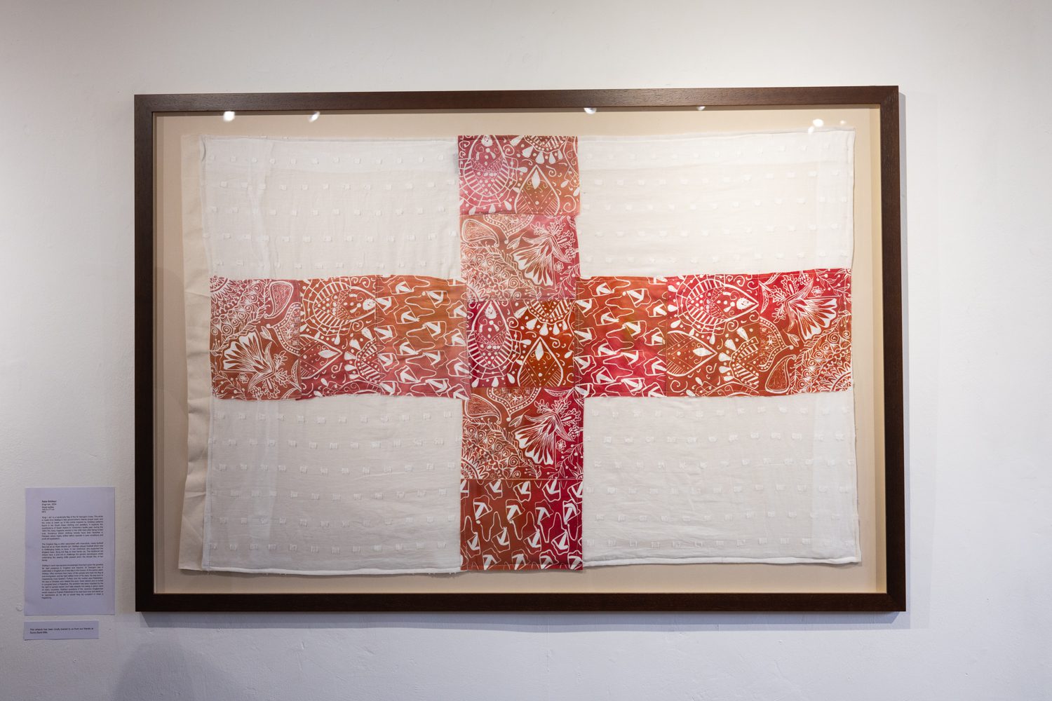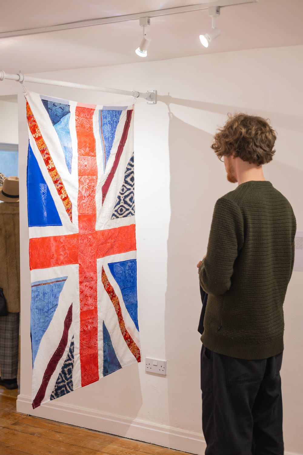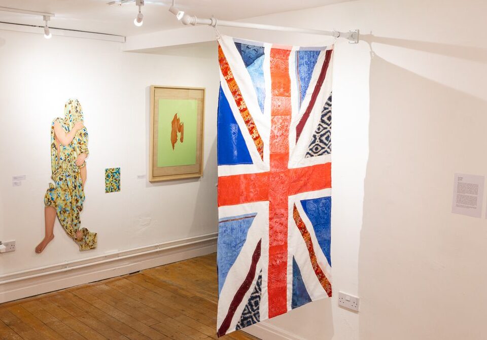 Her second piece, Brit-ish, is being shown for the first time. Created from a reclaimed Union Jack, it incorporates fabrics from a wide range of cultural traditions—Bradford wool, Caribbean carnival textiles, Chinese silks, Pakistani patterns. The result is a powerful visual statement: the Union Jack belongs to all of us.