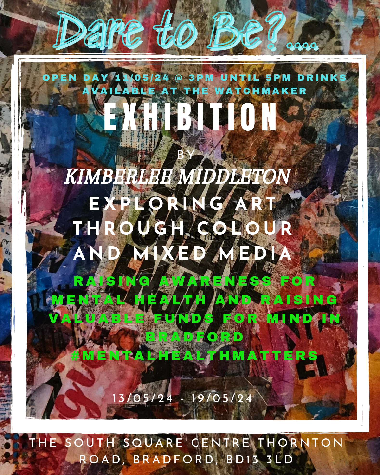 11may(may 11)3:00 pm19(may 19)3:00 pmDare to Be?... by Kimberlee MiddletonPart of Mindful May, An exhibition raising awareness for mental health and raising funds for Mind Charity