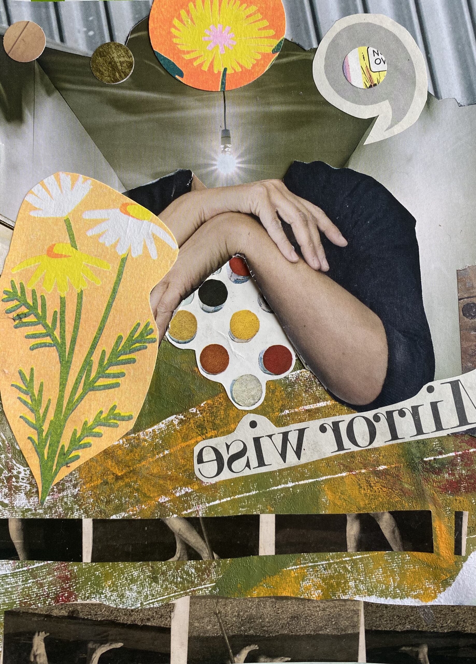 South Square Collage Club emerged from an online collage workshop during a socially restricted Covid period in May 2021 for World Collage Day. People all over the world joined in supported by remote hosts in South Square Centre and Exeter.. The local participants decided to continue in person once that was possible. Four years later there’s a lively evolving group who gather monthly in South Square Centre on a Saturday morning. The participants include people who are new to making art and people who have spent their lives creating. There’s usually a theme linked to our interests but following it is entirely optional. There’s a big selection of resources and a huge welcome to all.